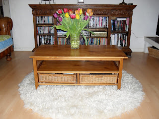 what a great idea its crazy how some flowers and a rug can transform a room completely.