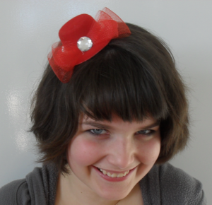 At first I wanted to wear it myself. But there's something sad about a forty year old mom wearing a jaunty little red hat in her hair. So I gave it to my 14-year old daughter!
