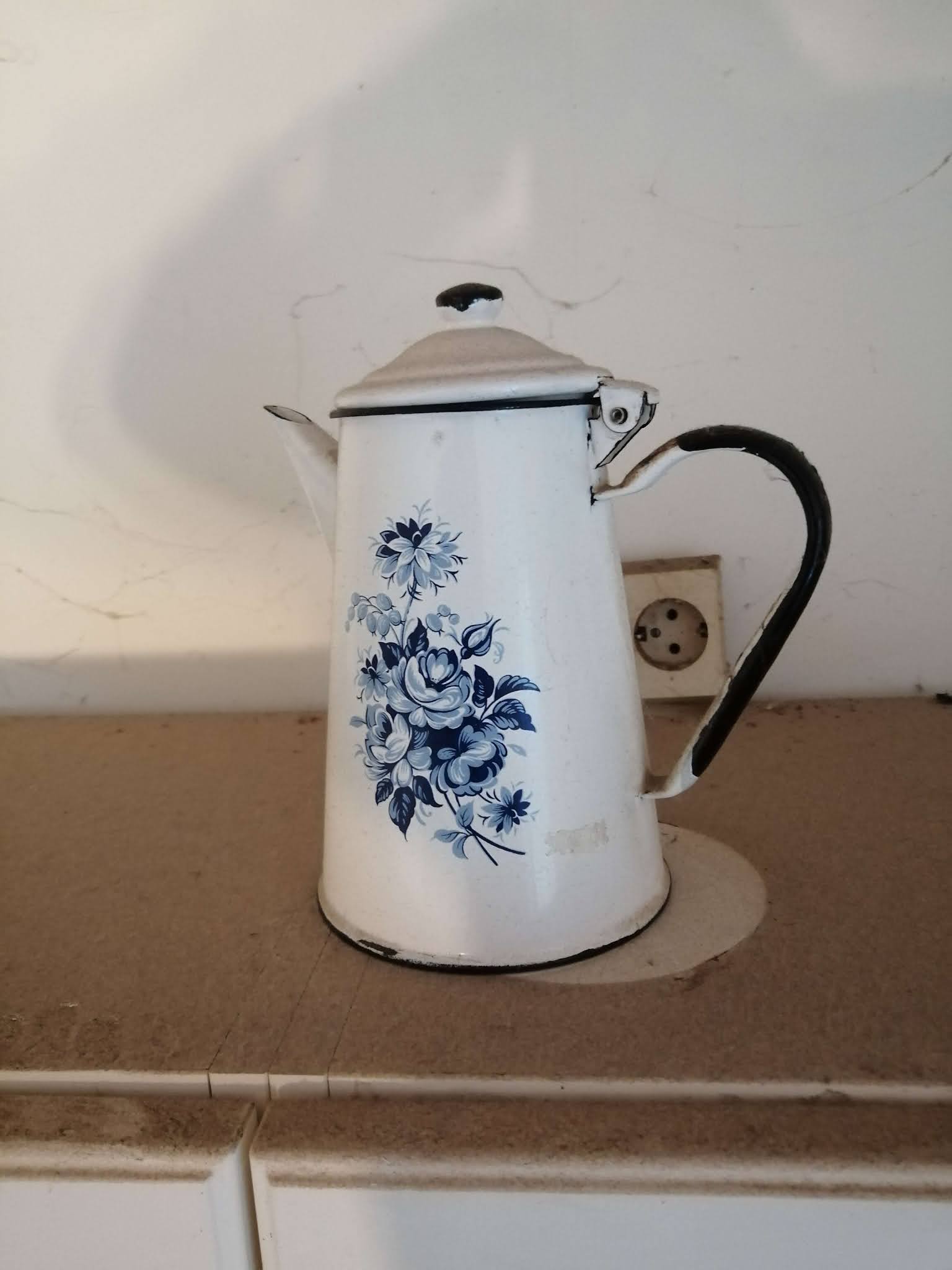 On top of my kitchen cabinet I have this cute Coffee Pot. Pushing it to the side a little bit, shows just how dirty it is up there....