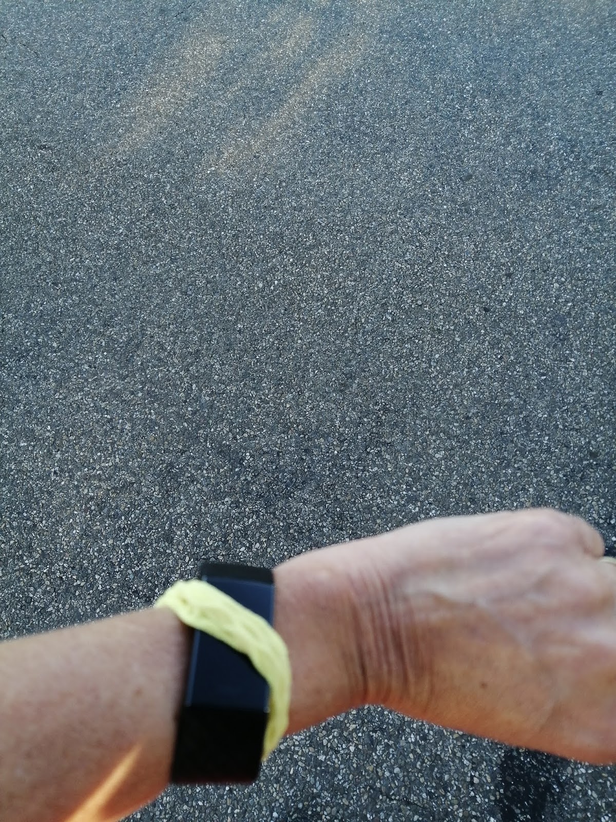 So you can imagine I was bummed out when the strap of my Fitbit Charge broke. At first I tried to fix it with an elastic hair band. Like this: