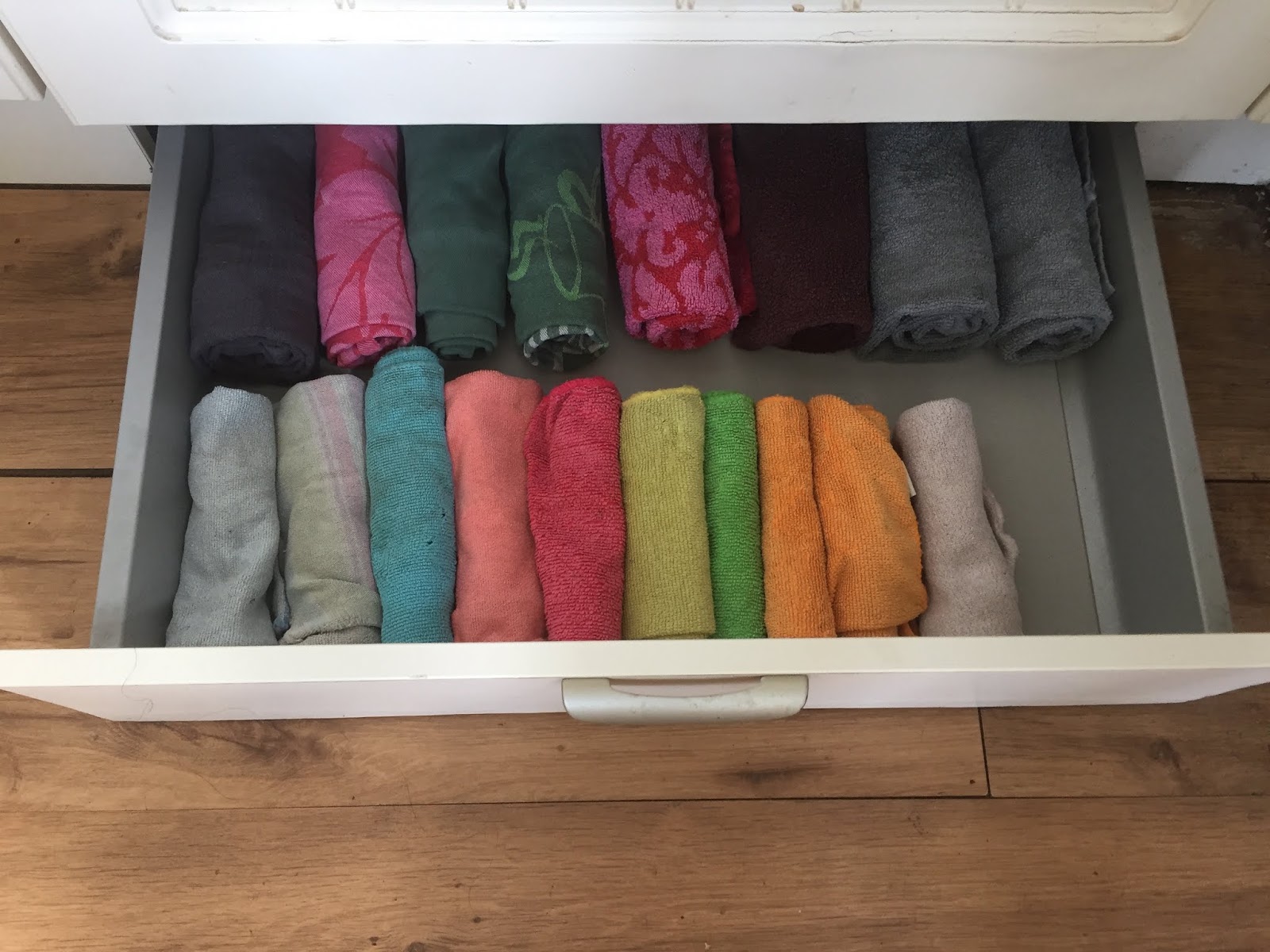 Not only have I thrown a lot of them away, I've also rolled them instead of folded them. Doesn't it look very organized?!