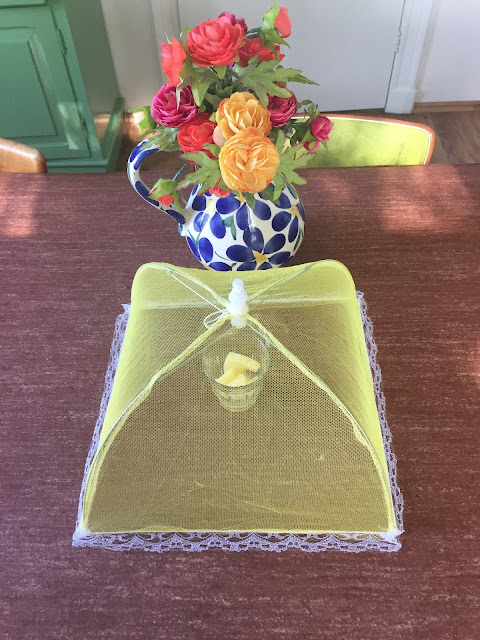 So I bought this food cover for only 50 cents. It looks nice and sunny, and it keeps the flies away.