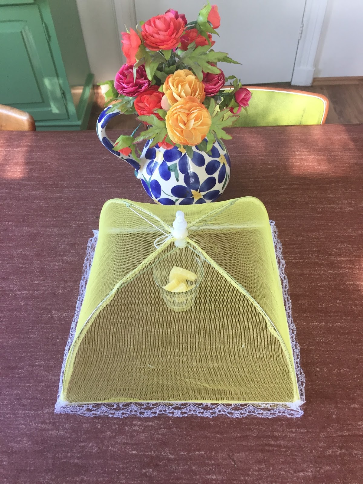 So I bought this food cover for only 50 cents. It looks nice and sunny, and it keeps the flies away.