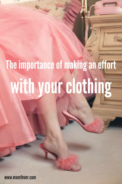 I feel it's important to dress well, even if nobody sees you, and your kids don't really care are as long as there's dinner on the table. Because it makes you feel different about yourself. If I don't dress in a nice skirt, I start feeling down and unmotivated to do anything at all. I totally get Flylady's advice to put on some serious shoes every morning to get yourself up and ready for your day.