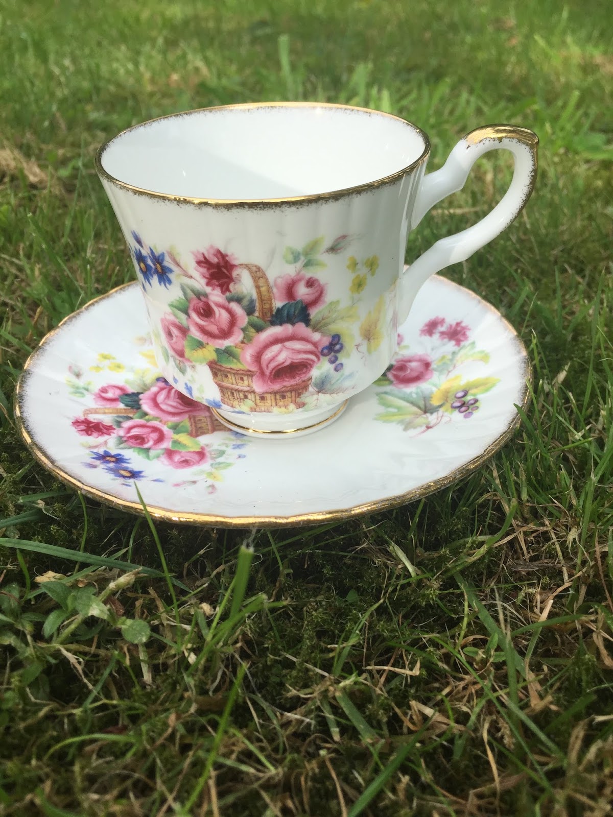So whenever I find myself in a thrift store I look for dainty cups and floral saucers. This week I was in luck! I found two beautiful cups and saucers.
