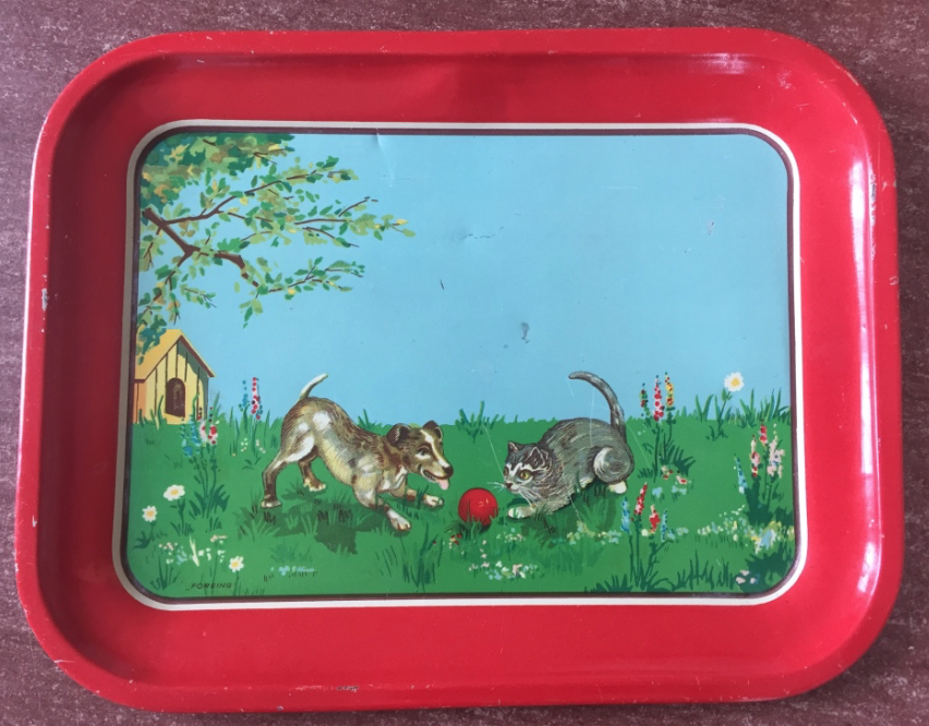 As you can see there's a picture of a cat and a dog on it, playing with a ball of yarn. I just love the atmosphere of this picture. It's nostalgic and simple. It reminds me of simpler times!